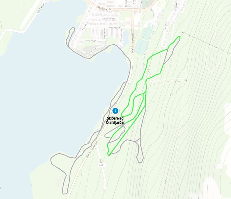 Skíðafélag Ólafsfjarðar hefur fjárfest í búnaði sem sýnir stöðu á göngubrautum í Ólafsfirði. Um er að ræða gps tæki sem skráir inn á vefsvæðið www.skidaspor.net á rauntíma stöðuna á gönguspori á vegum félagsins. Við erum að prófa búnaðinn í fyrsta skipti í dag og lítur þetta mjög vel út.