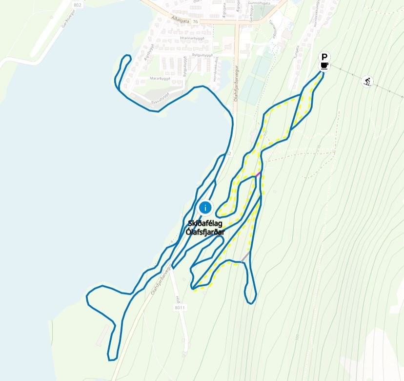 Tindaöxl verður lokuð í dag þar sem veðurspá gerir ráð fyrir að það hvessi hressilega þegar líður á daginn, skíðagöngubrautir voru troðnar í gær og er fínasta spor.